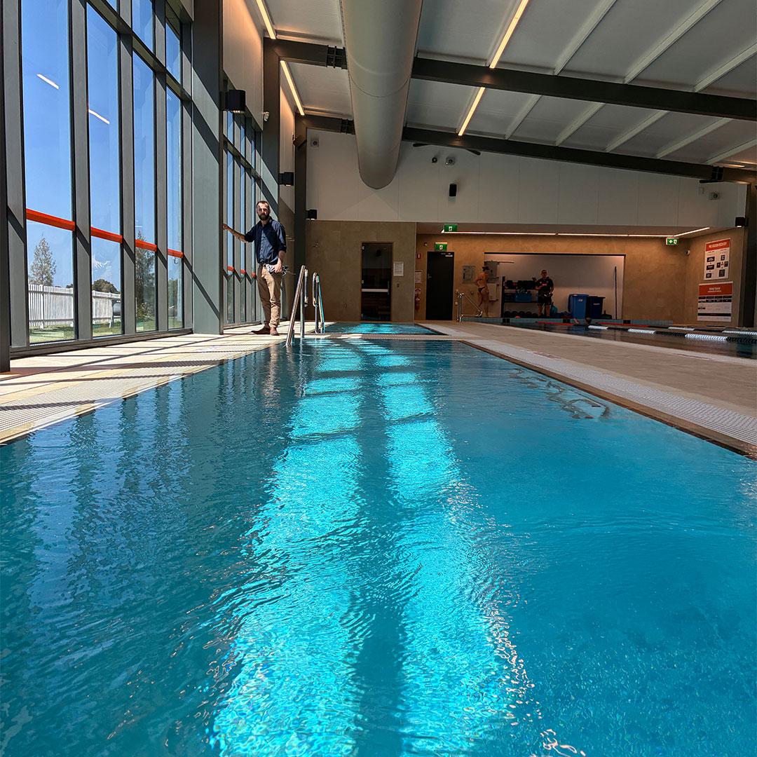 This included a 150m² main pool to be maintained at 28°C, a 18m² hot pool set at 34°C, and a second 18m² cold pool set at 10°C.